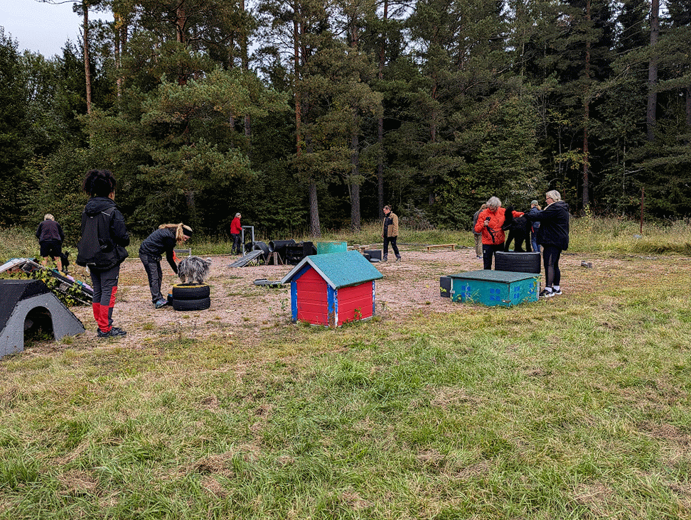 Medtag: Sele på hunden samt gott belöningsgodis i små bitar